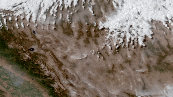 On June 28–29, 2020, NOAA’s GOES-West satellite watched a particularly intense dust cloud race across Nevada’s Mojave desert.