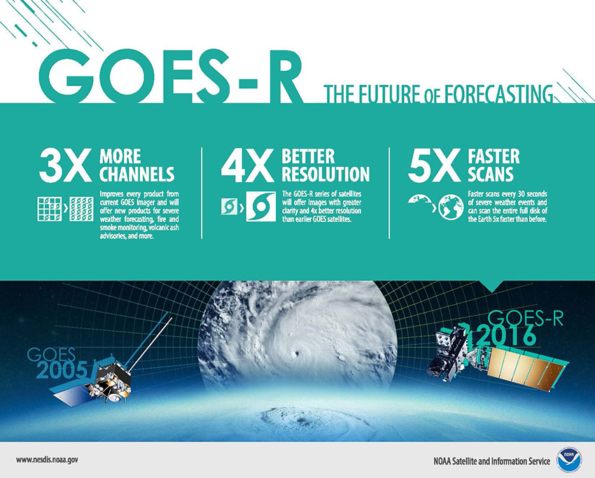 The GOES-R satellite is set to launch on November 4, 2016. GOES-R, or GOES-16 as it will be known once operational.