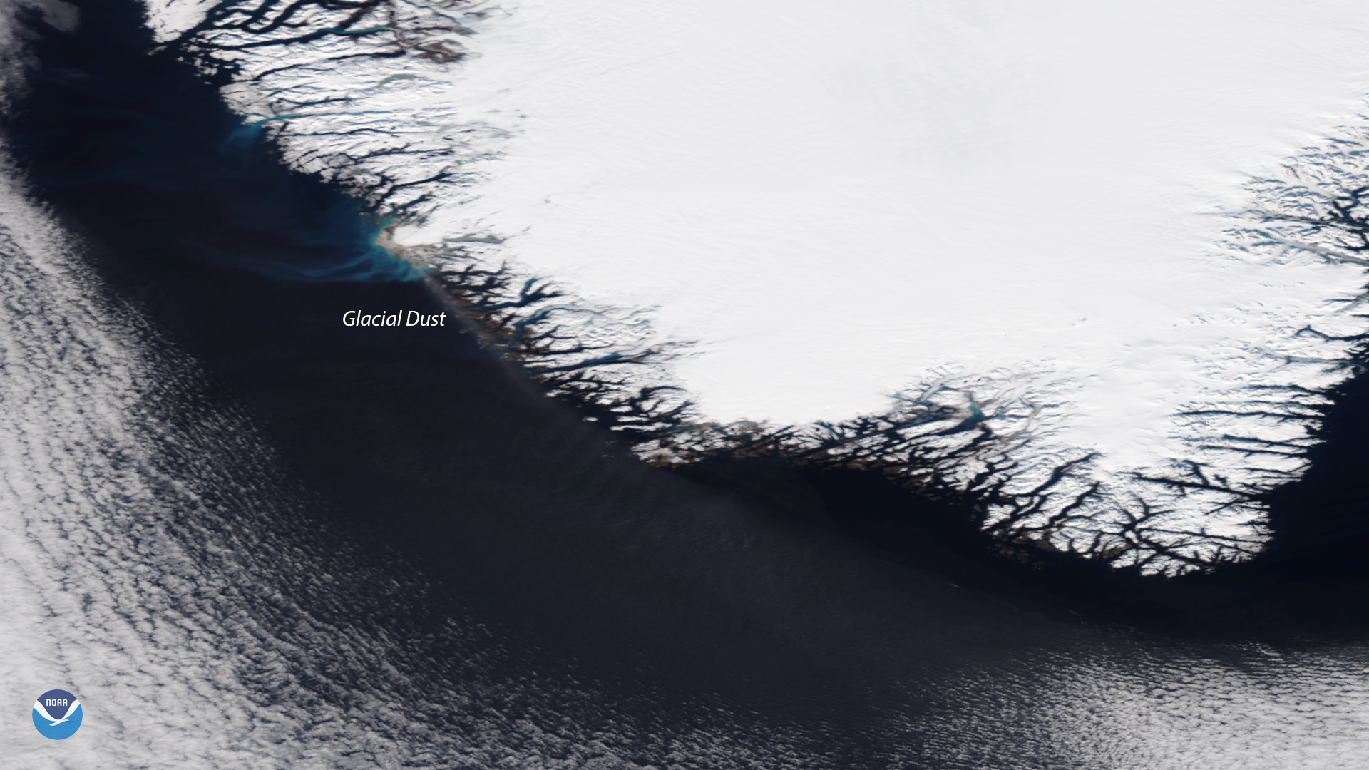 The NOAA-20 VIIRS instrument captured a rarely seen plume of high-latitude dust off the coast of Greenland on October 14, 2018.