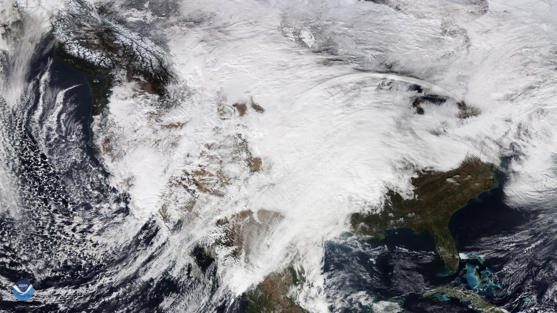 On Nov. 28, NOAA-20 captured this view of the continental United States as it was covered by a large low-pressure system and an…