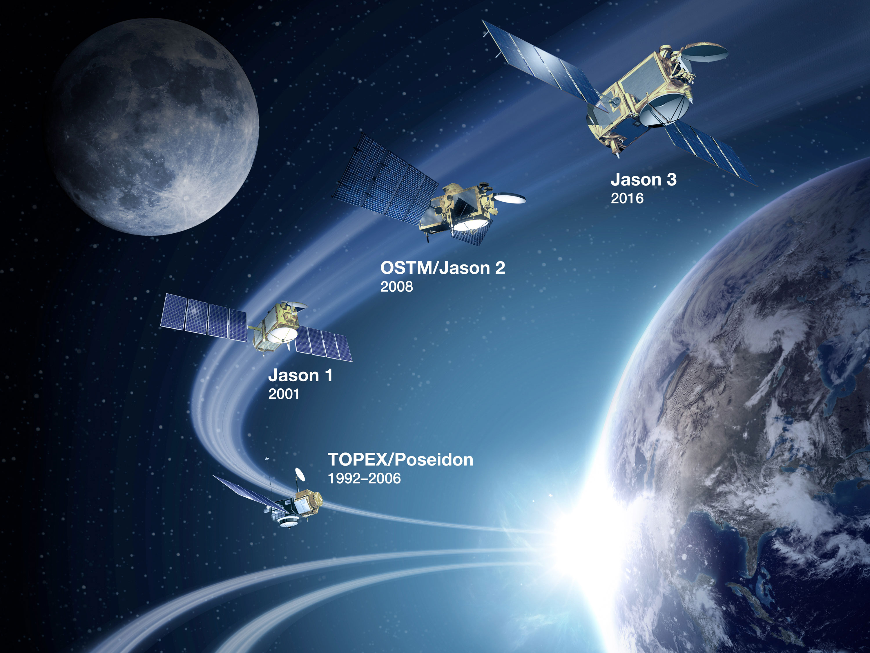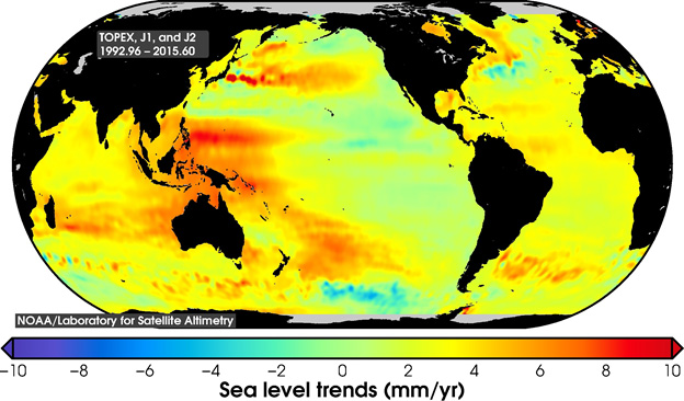 NOAA began monitoring sea level more than 20 years ago, with the TOPEX/Poseidon satellite in 1992. NOAA launched its newest in the series, Jason 3.